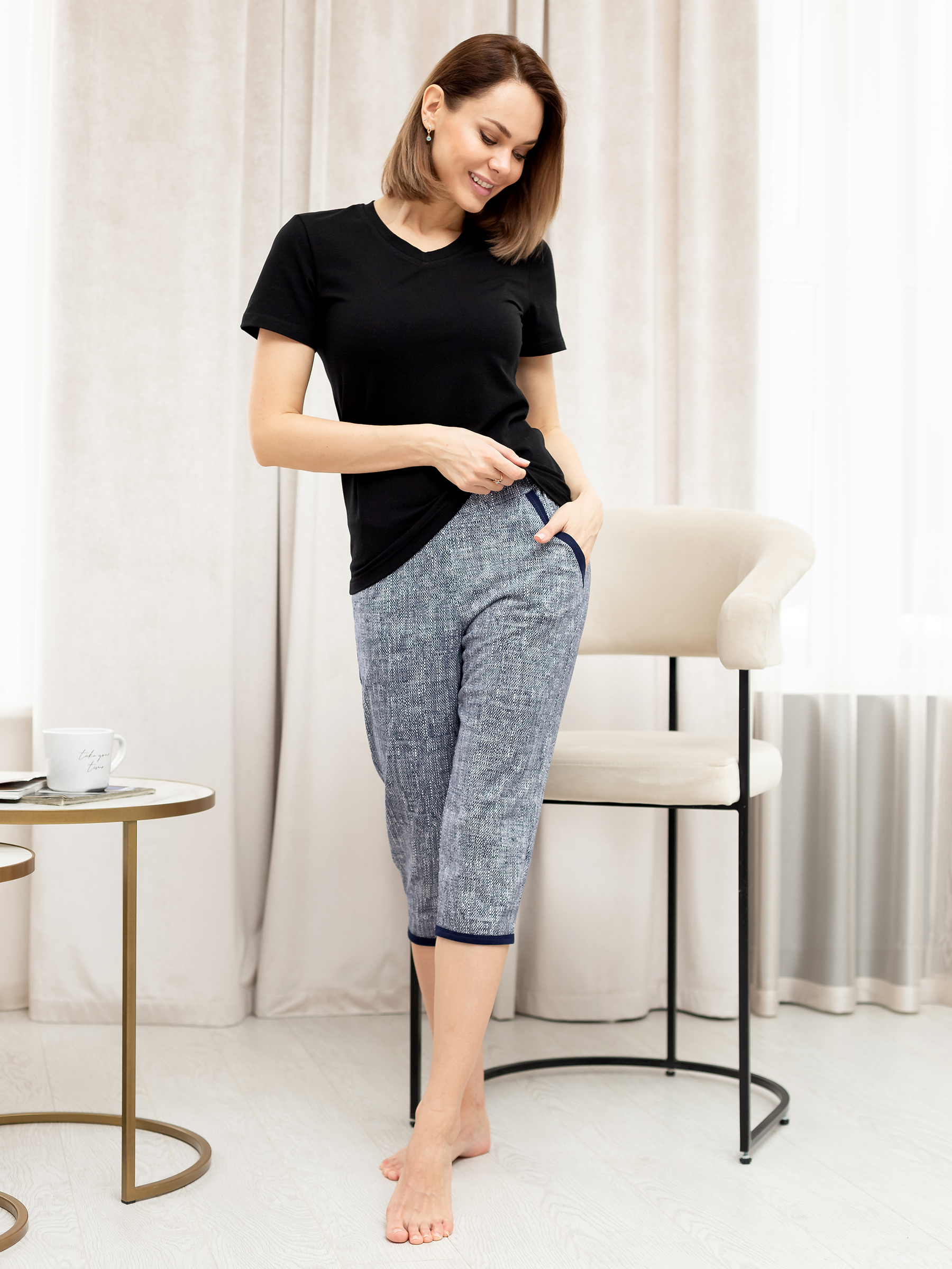 Классические  трикотажные женские бриджи  из 100% хлопкового материала.