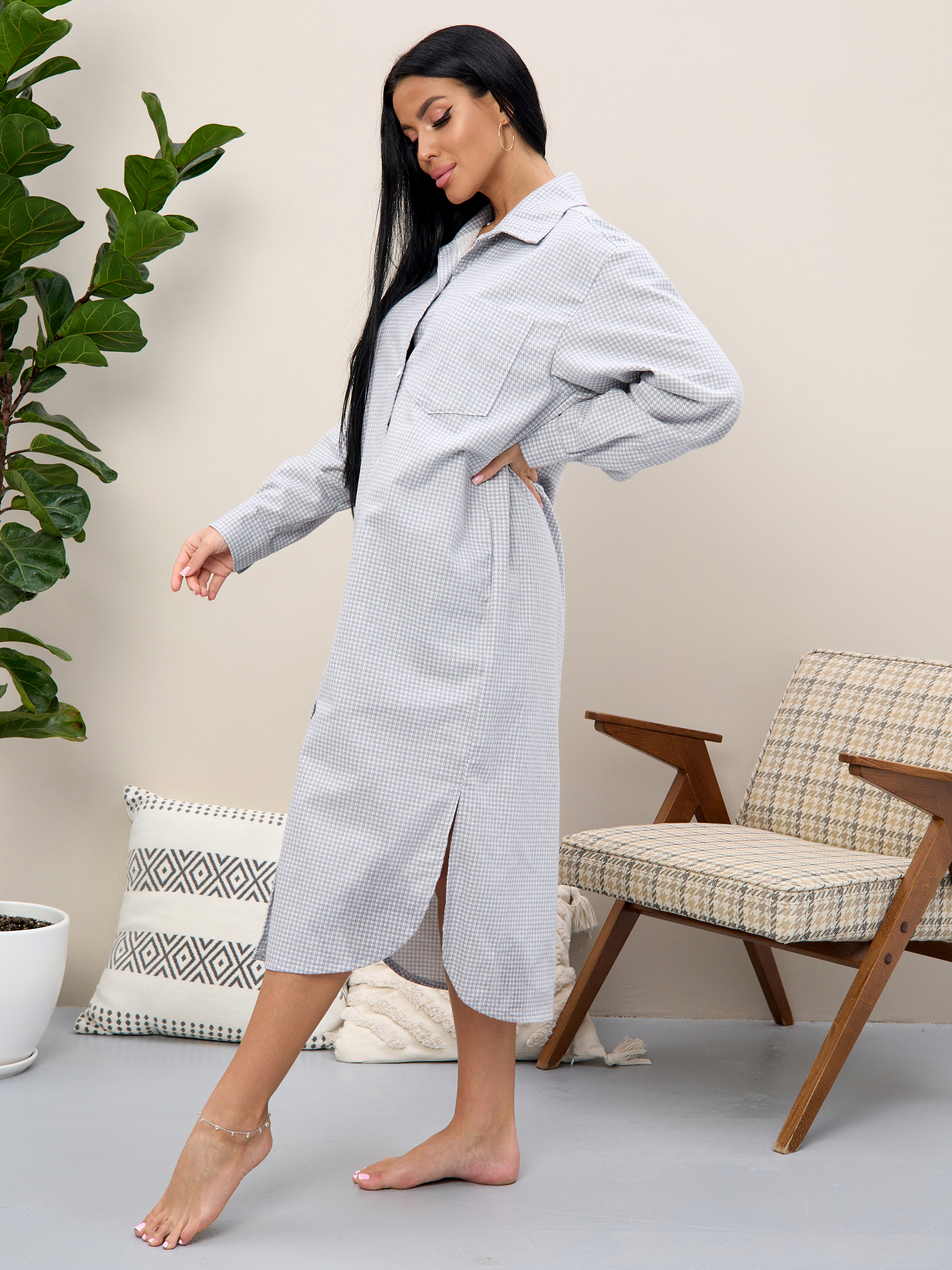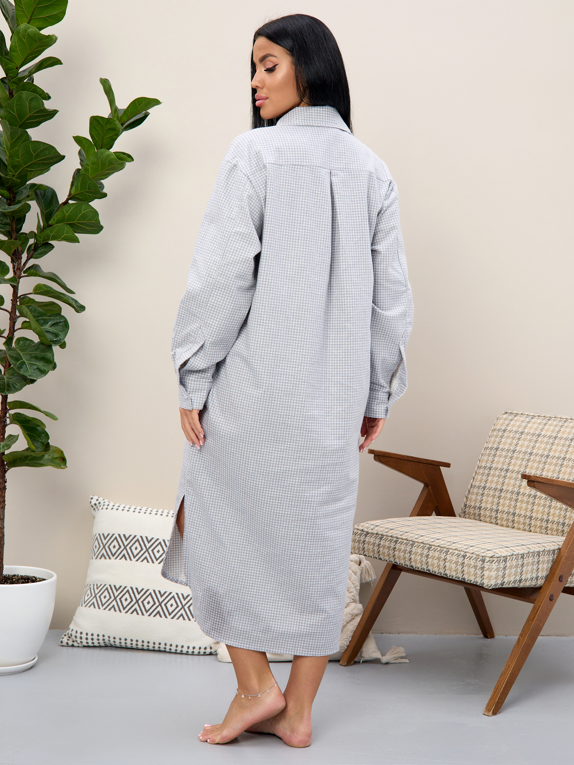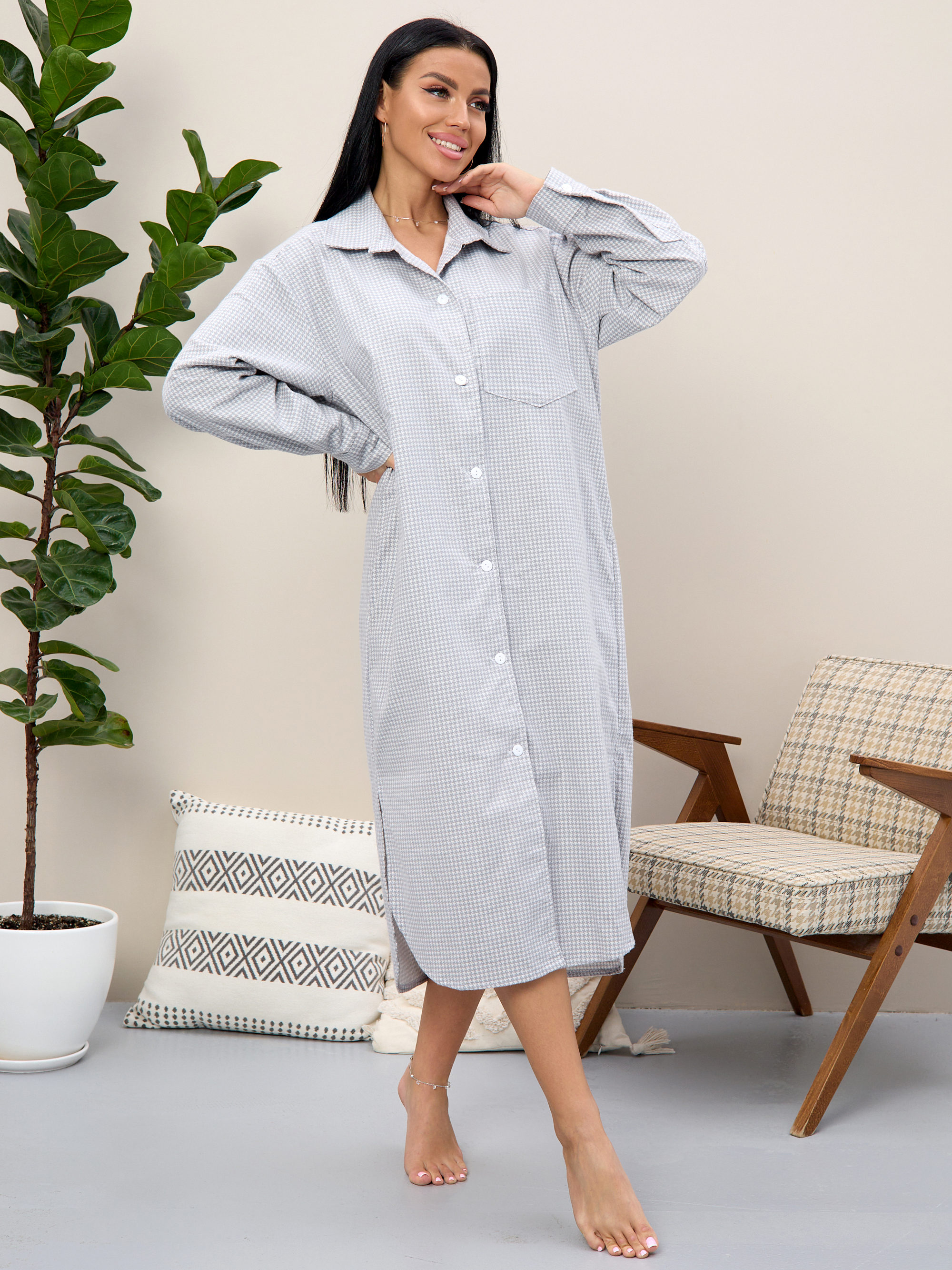 Халат - рубашка изготовлен из 100% хлопка.